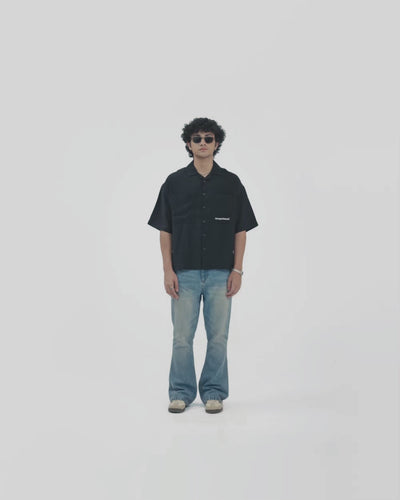 Introducing the Black Cuban Shirt, crafted from a premium poly-viscose blend for a smooth, refined drape with a subtle sheen. Designed in a relaxed boxy fit with short sleeves and a classic Cuban collar, the shirt combines a timeless silhouette with a modern edge. The piece features a white Wrongs and Rebels Revival embroidery on the chest pocket, offering a clean contrast against its deep black base. With a slightly heavy fall and elevated texture, this shirt delivers effortless sophistication and all-day comfort.