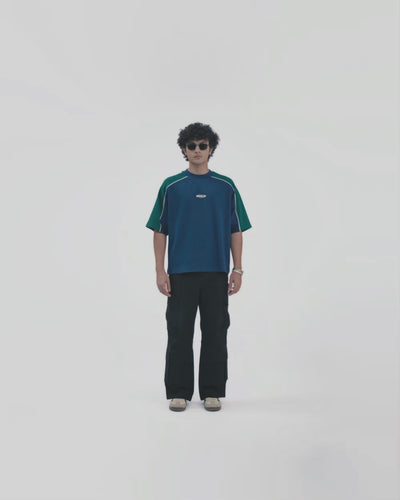 Introducing the White Old School Boxy T-Shirt, a nod to classic collegiate aesthetics. Crafted from heavy premium cotton with a soft, structured hand feel, the piece features vintage blue and red piping running over the shoulders, bringing a retro athletic contrast to its clean white base. A high-density rubber print of the Rebels logo on the chest combines the same vintage blue and red tones, completing a look that feels timeless yet bold.